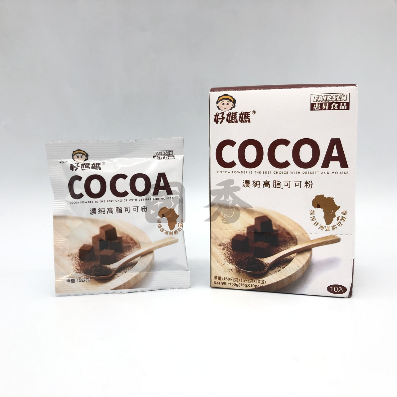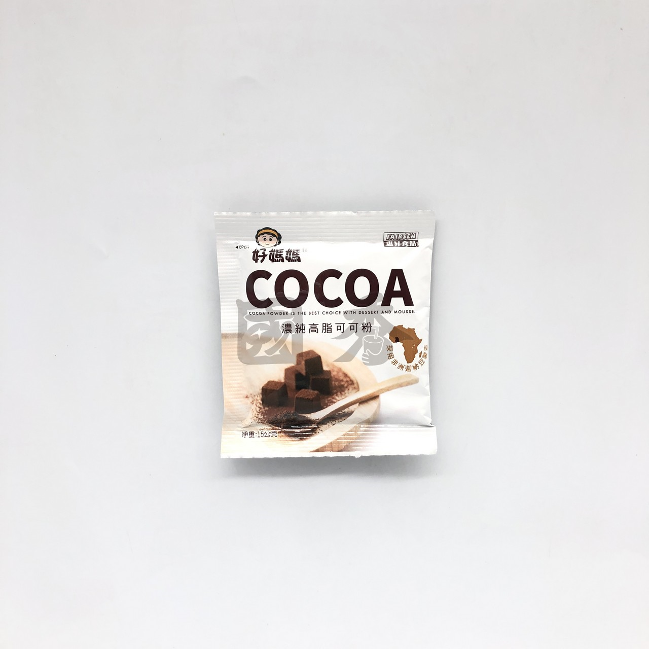 好媽媽濃純高脂可可粉,是從可可樹結出的果實裏取出可可豆,經發酵、粗碎、去皮等工序得到的可可豆碎片(通稱可可餅),由可可餅脫脂粉碎之後的粉狀物,即為可可粉。